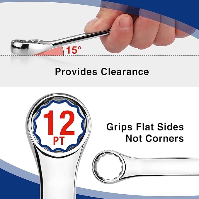 ✅ Efficient & Precision-Grip Wrench Design – Features a 12-point box end, doubling the access angle of a standard 6-point wrench and gripping flat sides of fastener heads (not corners) to prevent rounding off.